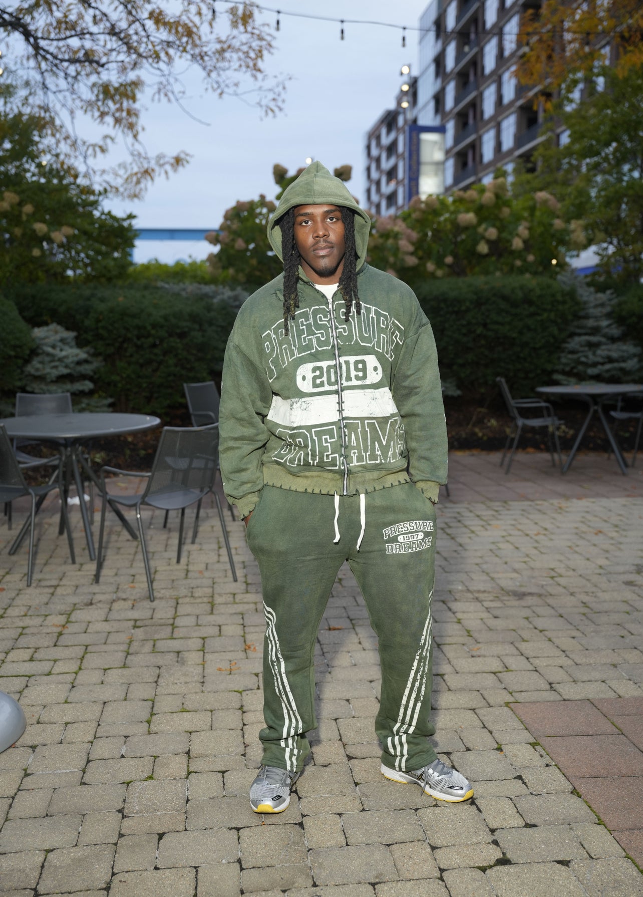 “Pressure Dreams 2019” graphic on hoodie & pants